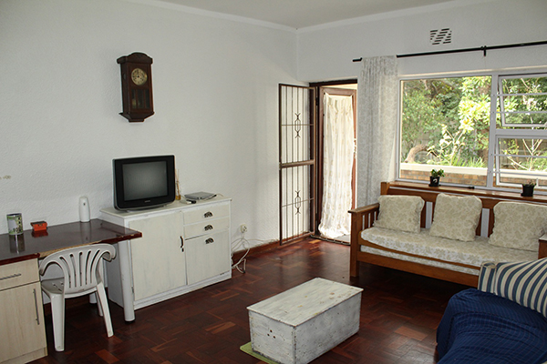 Lounge opens to balcony and a tranquil garden setting.